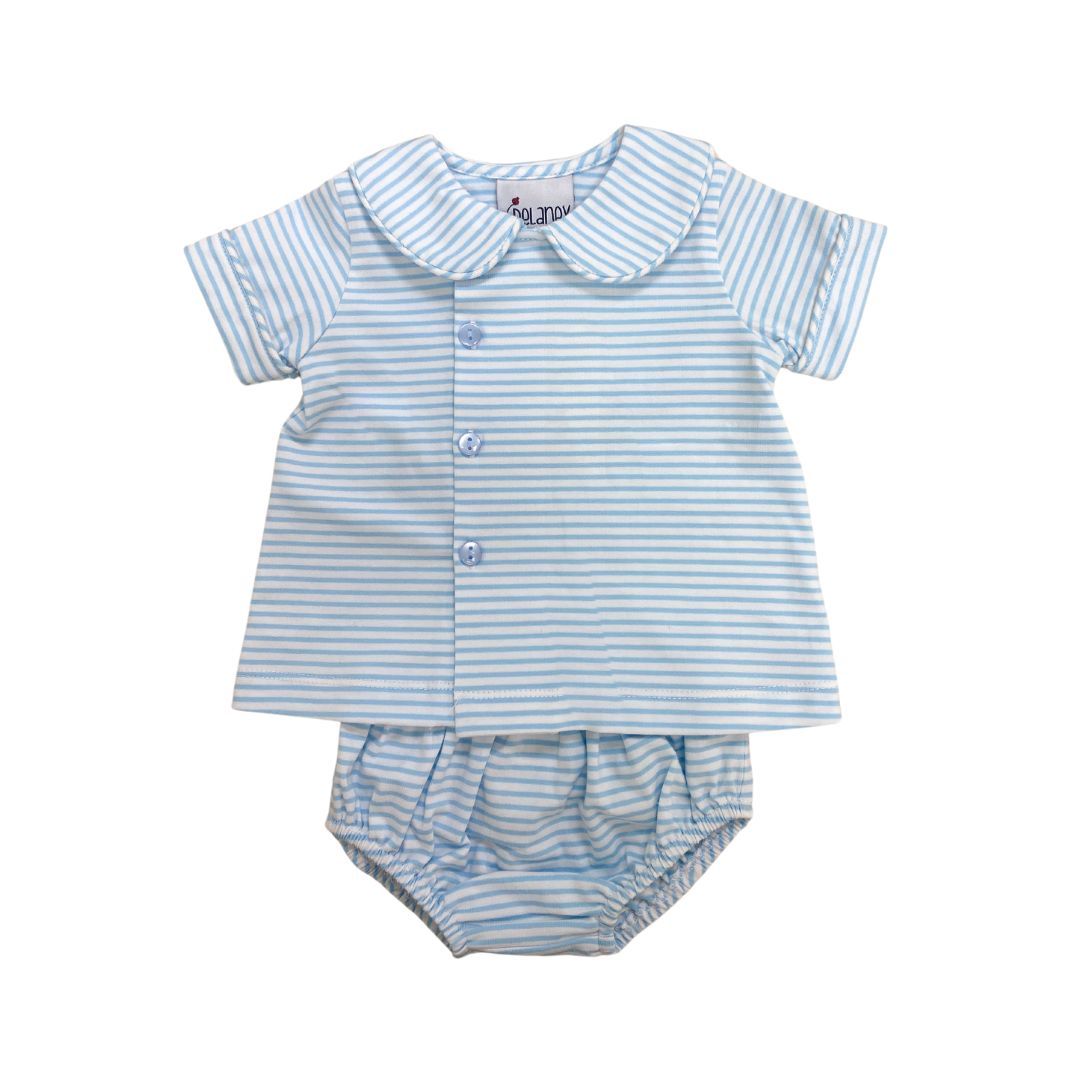 Blue Stripe Side Button Peter Pan Collar Diaper Set
