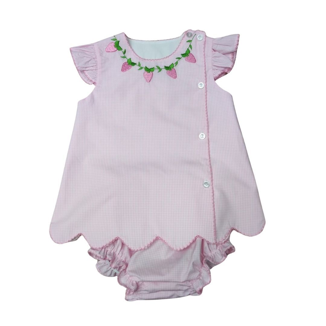 Embroidered Strawberry Neckline Side Button Bloomer Set
