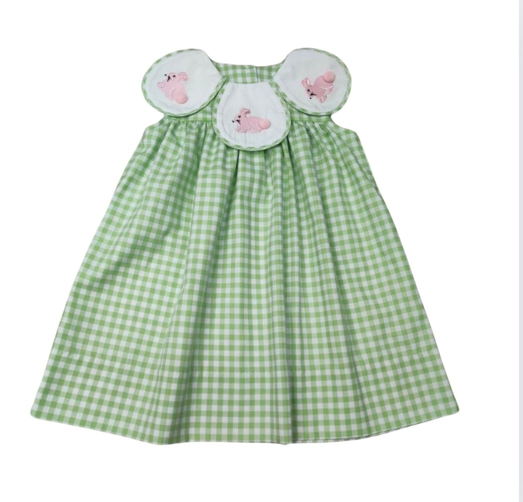 Green Check Bunny Petal Collar Dress