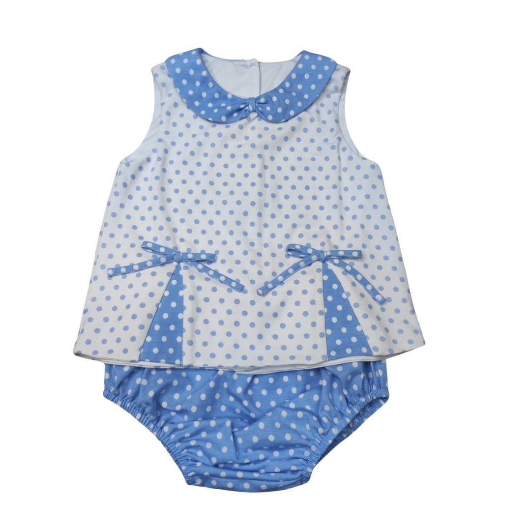 Polka Dot Pleated Peter Pan Collar Bloomer Set